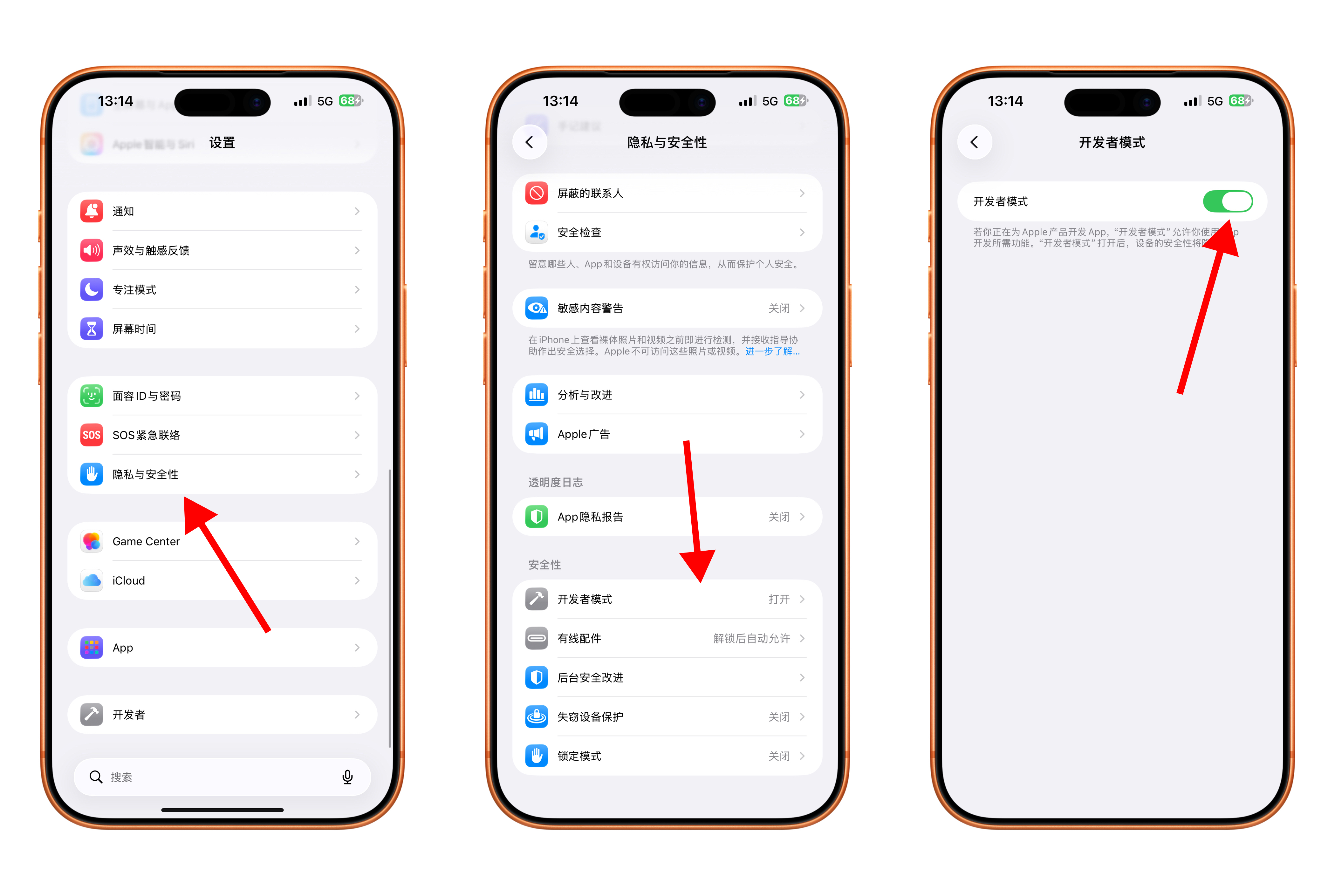 2,往下滑,在安全性这边,点击「开发者模式」
