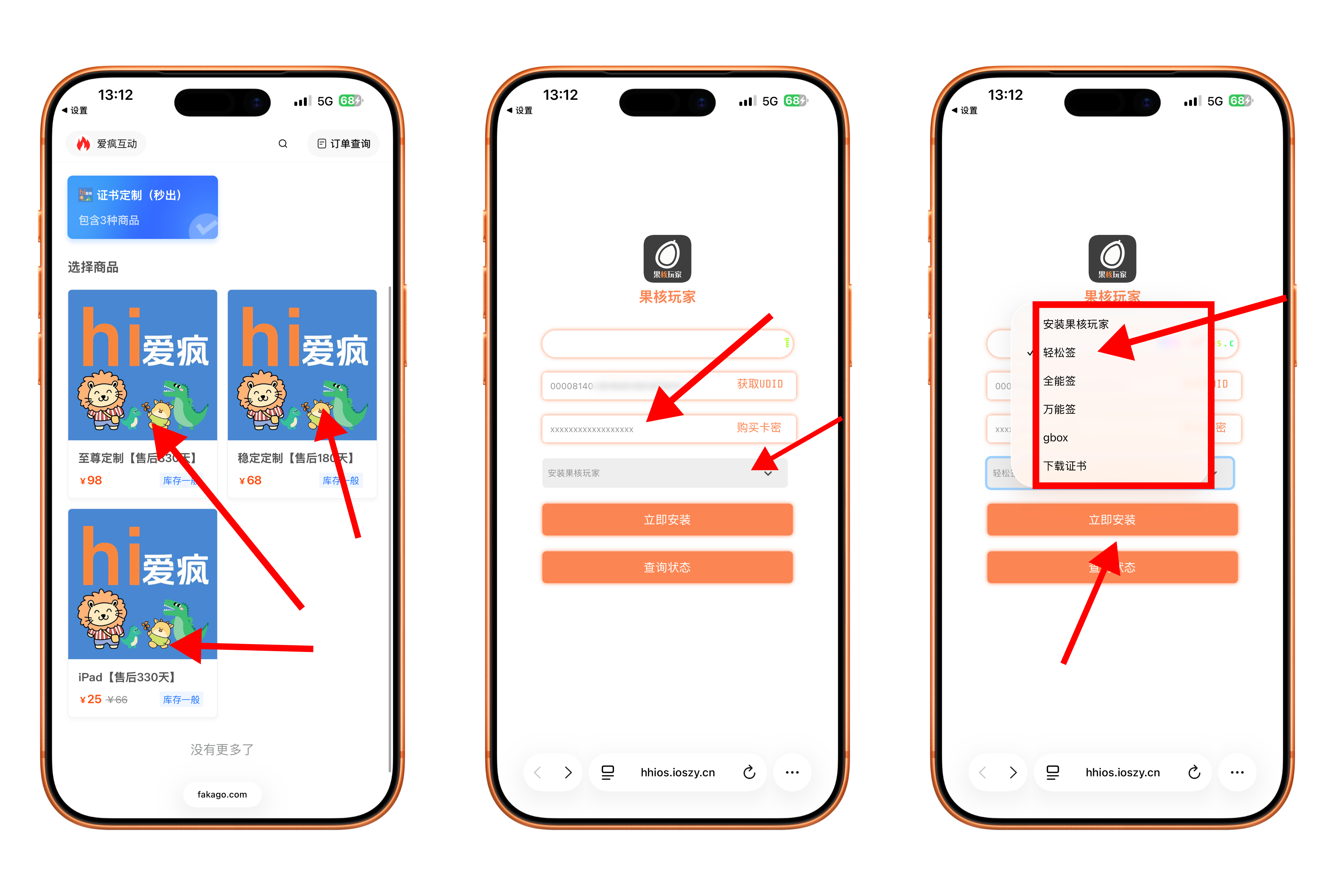 - 证书包含p12文件,mp文件,密码。单设备使用!